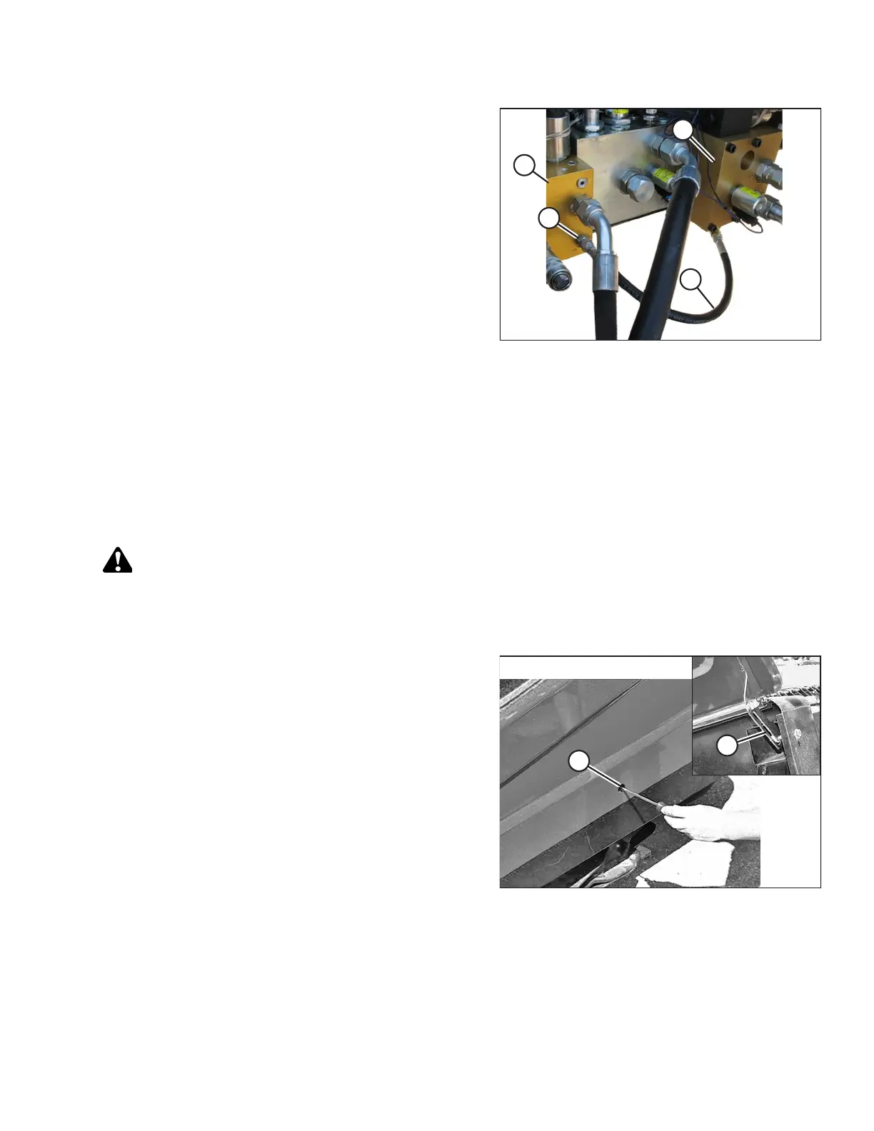 The A40D Auger Header hydraulic drive hose routing depends on the windrower model to which the header is being