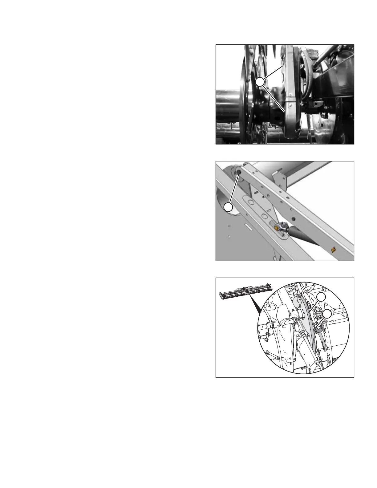 14. Reinstall reel drive cover (A) at the center of header.