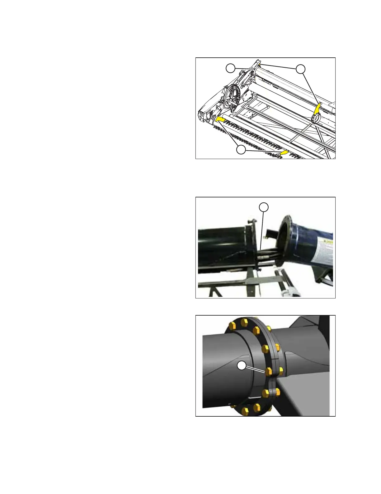3. Remove bolt (B) securing reel arm to the backtube flange.
