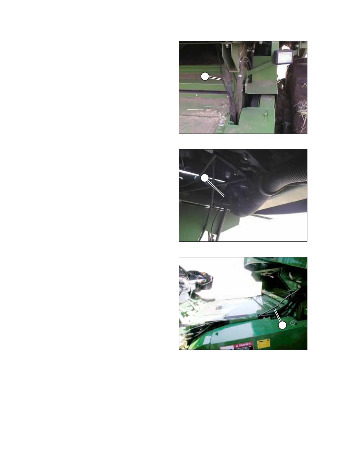 13. Secure switch harness (A) at the rear of the feeder house