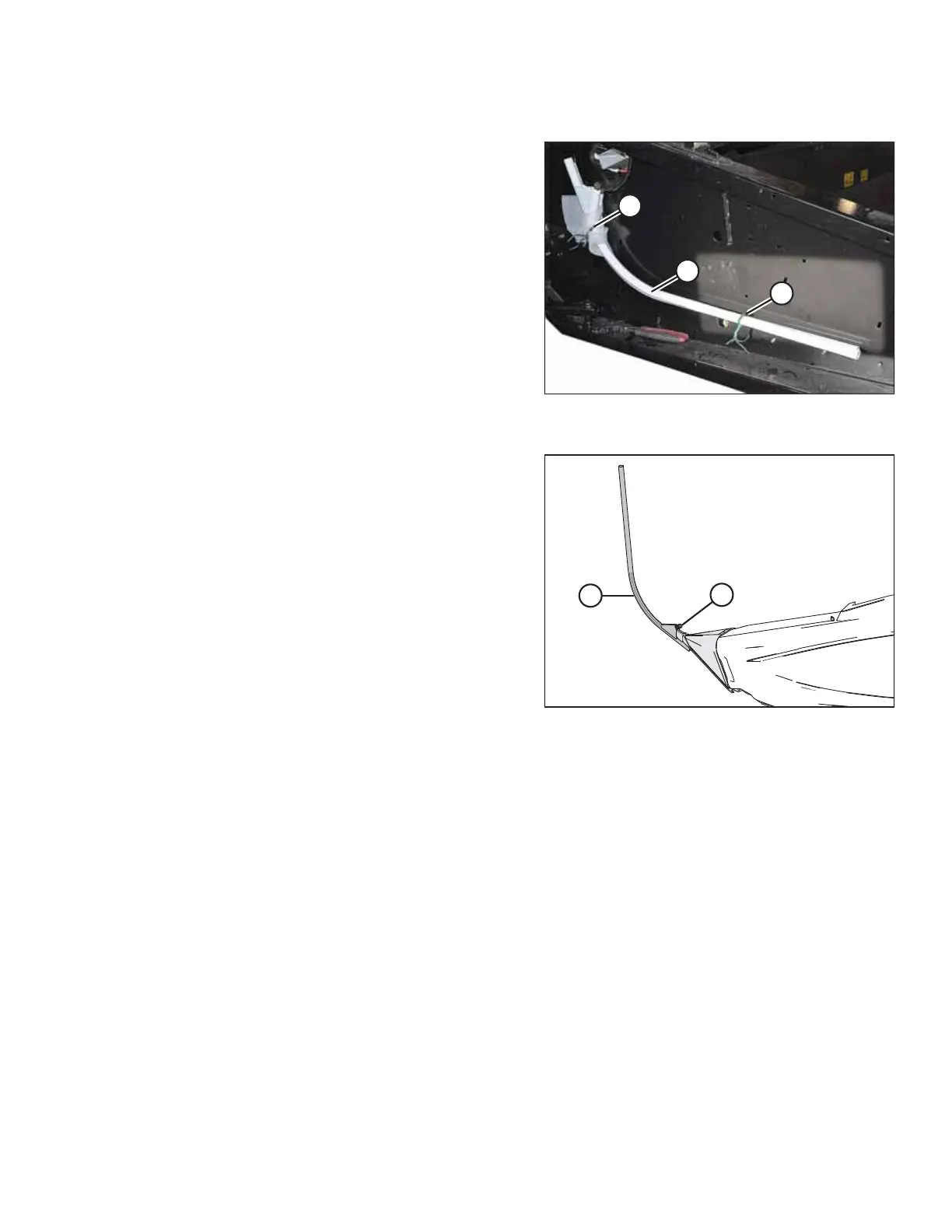 2. Position crop divider rod (B) on tip of crop divider as shown