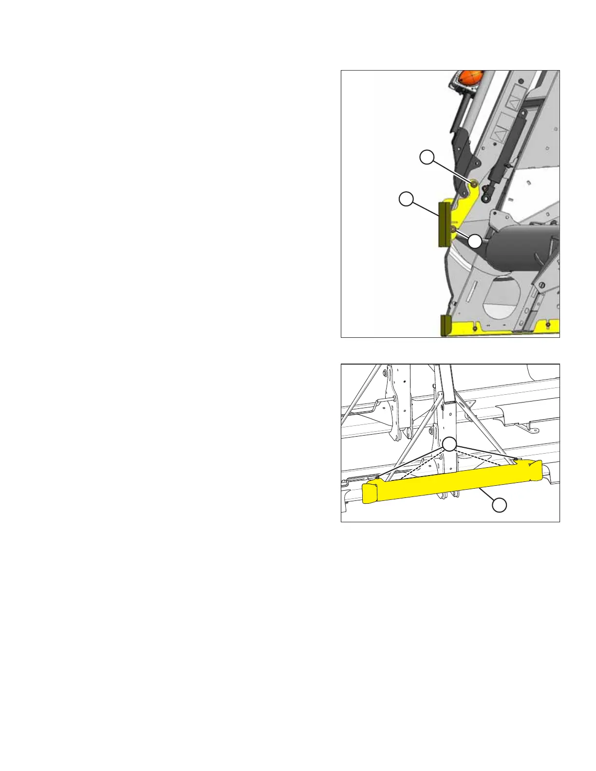 7. Loosen lower bolt (A), remove upper bolt (B), and remove