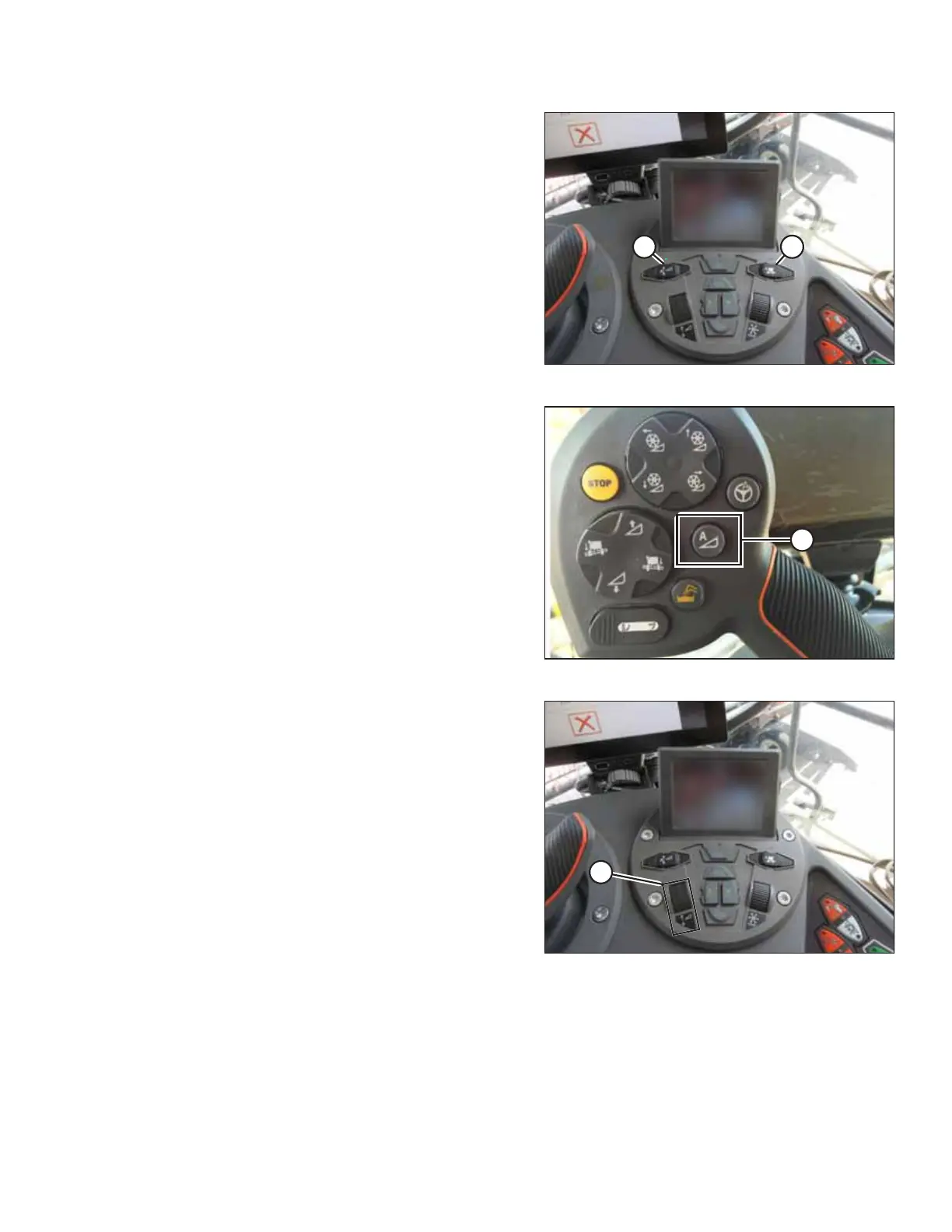 1. With the header running, set lateral tilt to MANUAL by