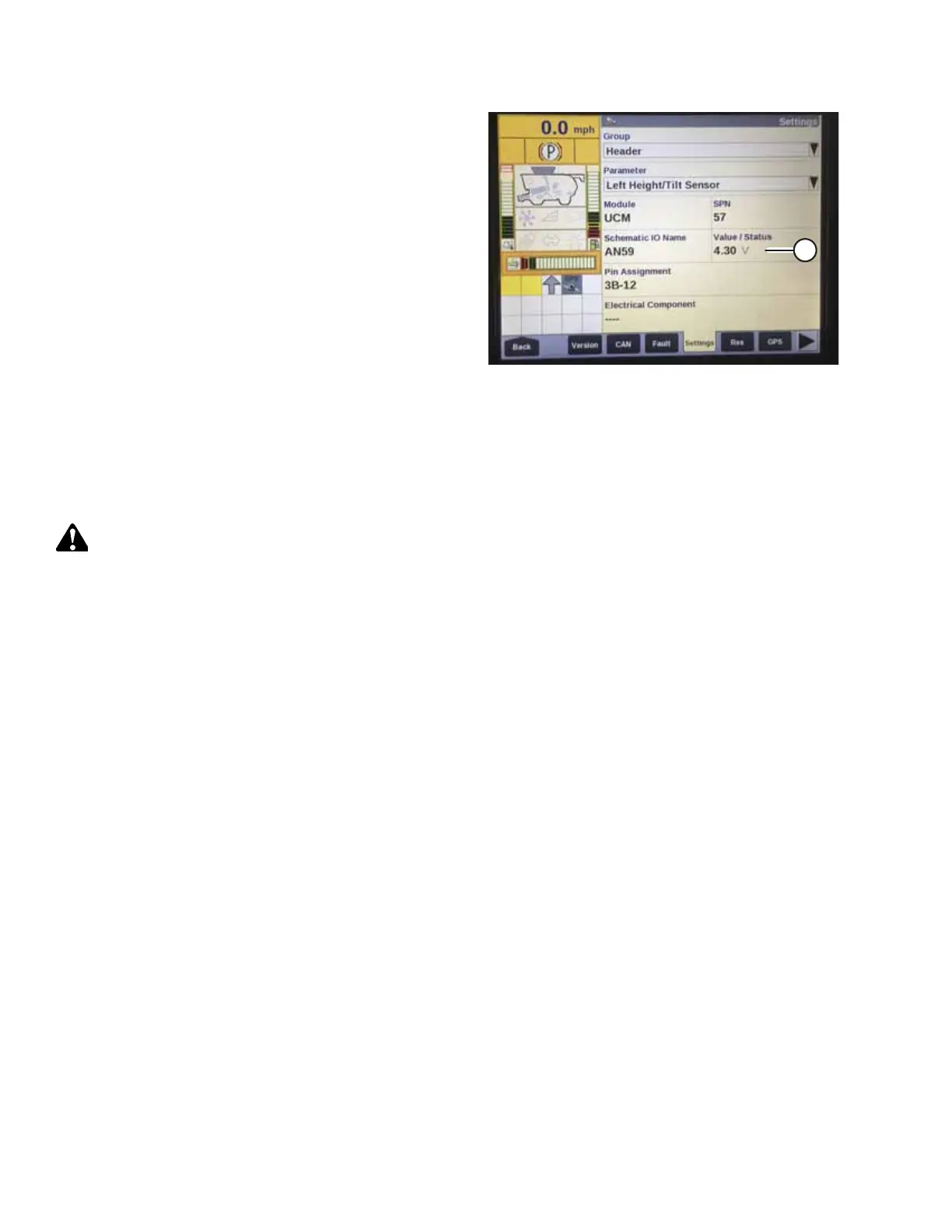 VALUE/STATUS field (A). Lower the feeder house fully, and