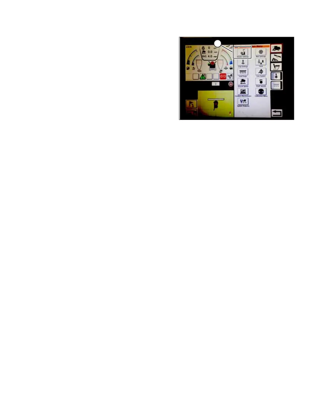 2. On the COMBINE MAIN MENU, touch HEADER