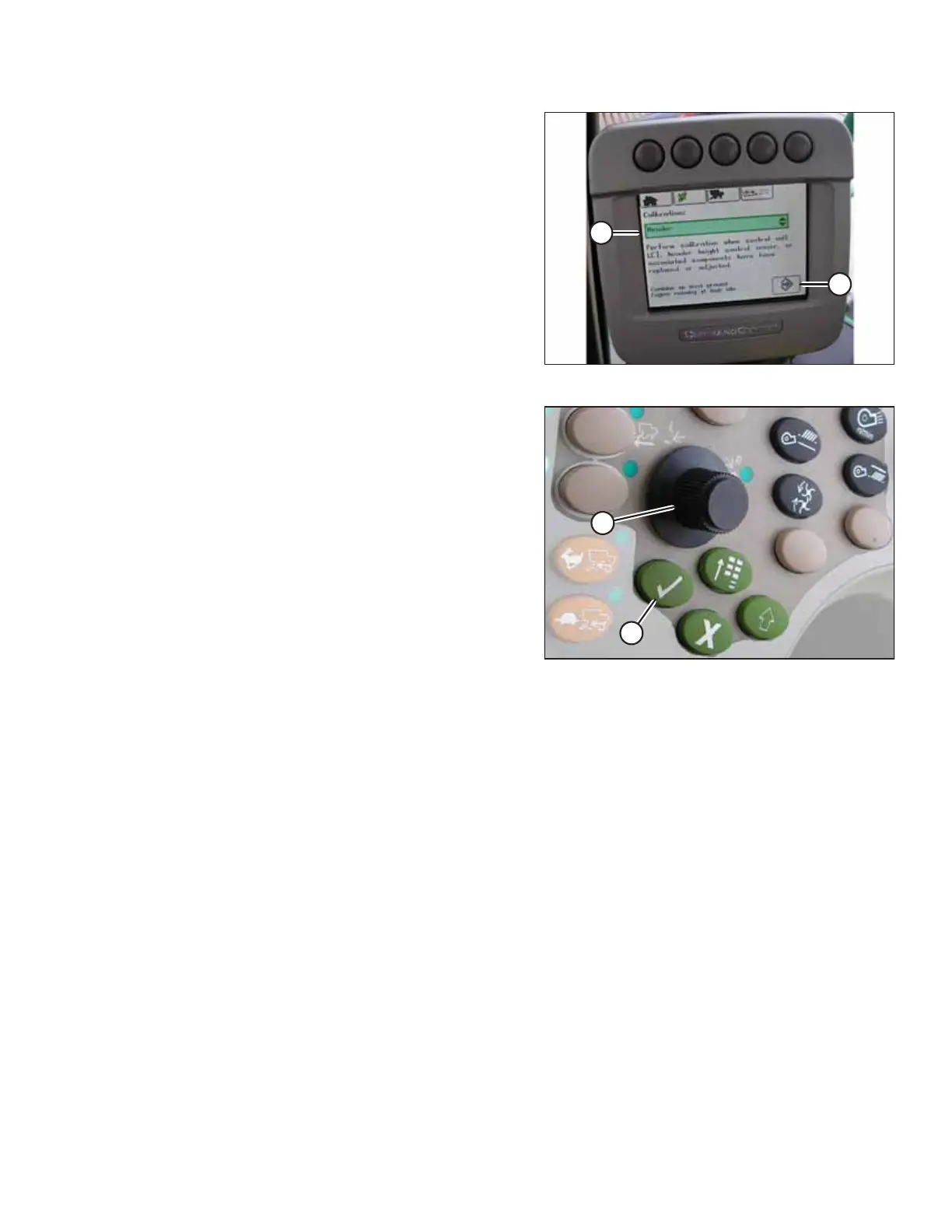 Voltage Range from the Combine Cab – John Deere S and T Series, page 431 to check and adjust the range.