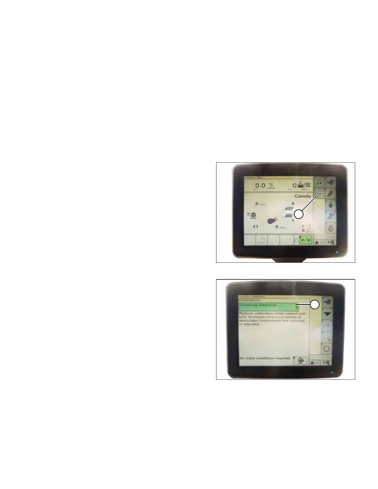 4. Select THRESHING CLEARANCE (A) and a list of calibration