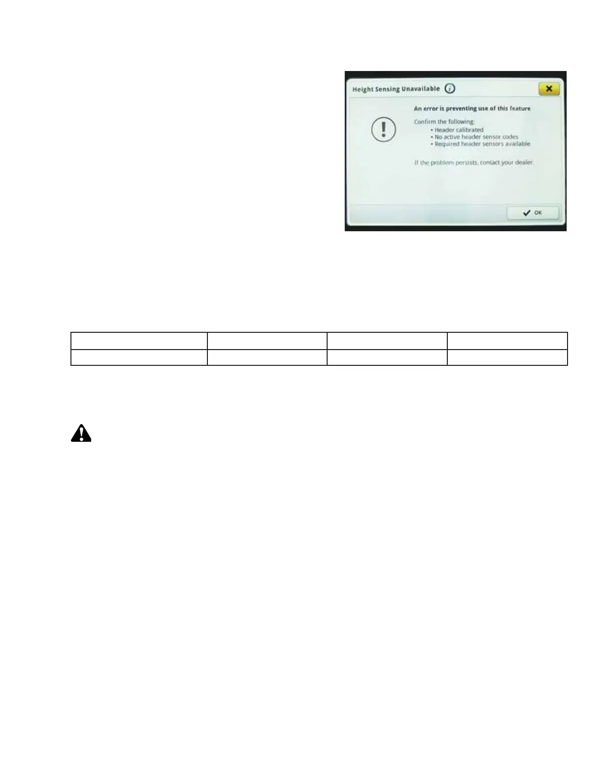 The auto header height sensor output must be within a specific range, or the feature will not work properly.