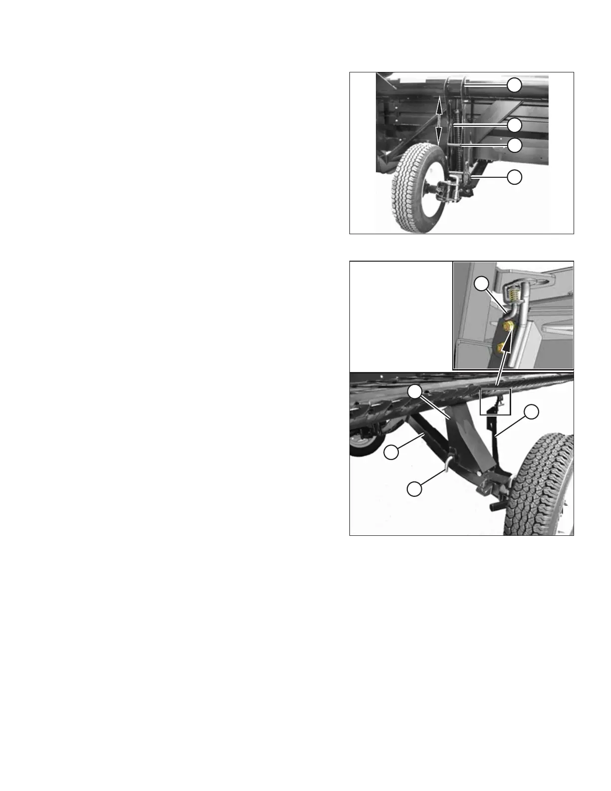 10. Remove pin (D), lower support (E) onto axle, and reinsert
