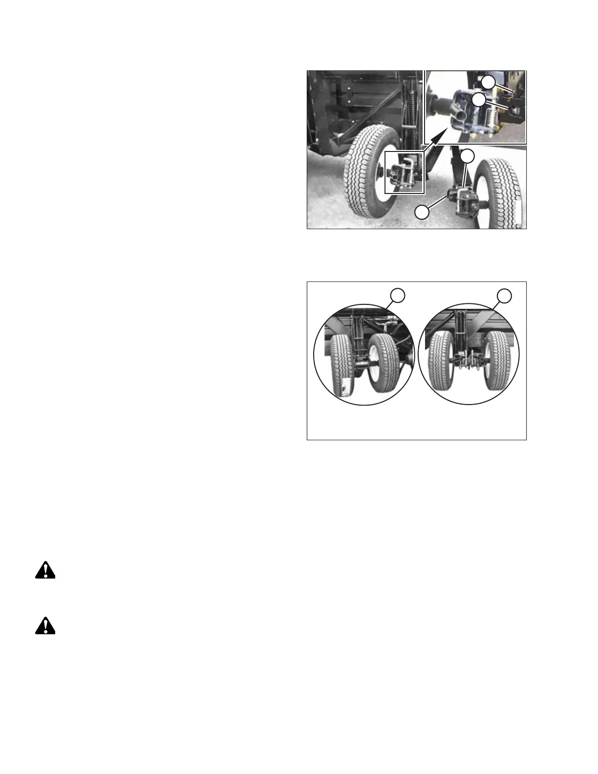 14. Lift the wheel, lift latch (C), and engage lug (D) onto the left