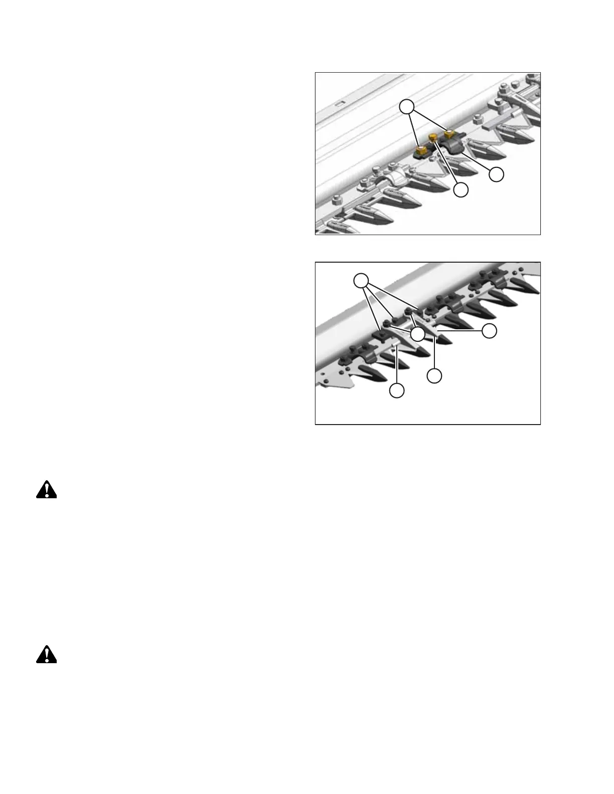6. Complete the hold-down adjustments, run the header at low engine speed, and listen for noise caused by insufficient