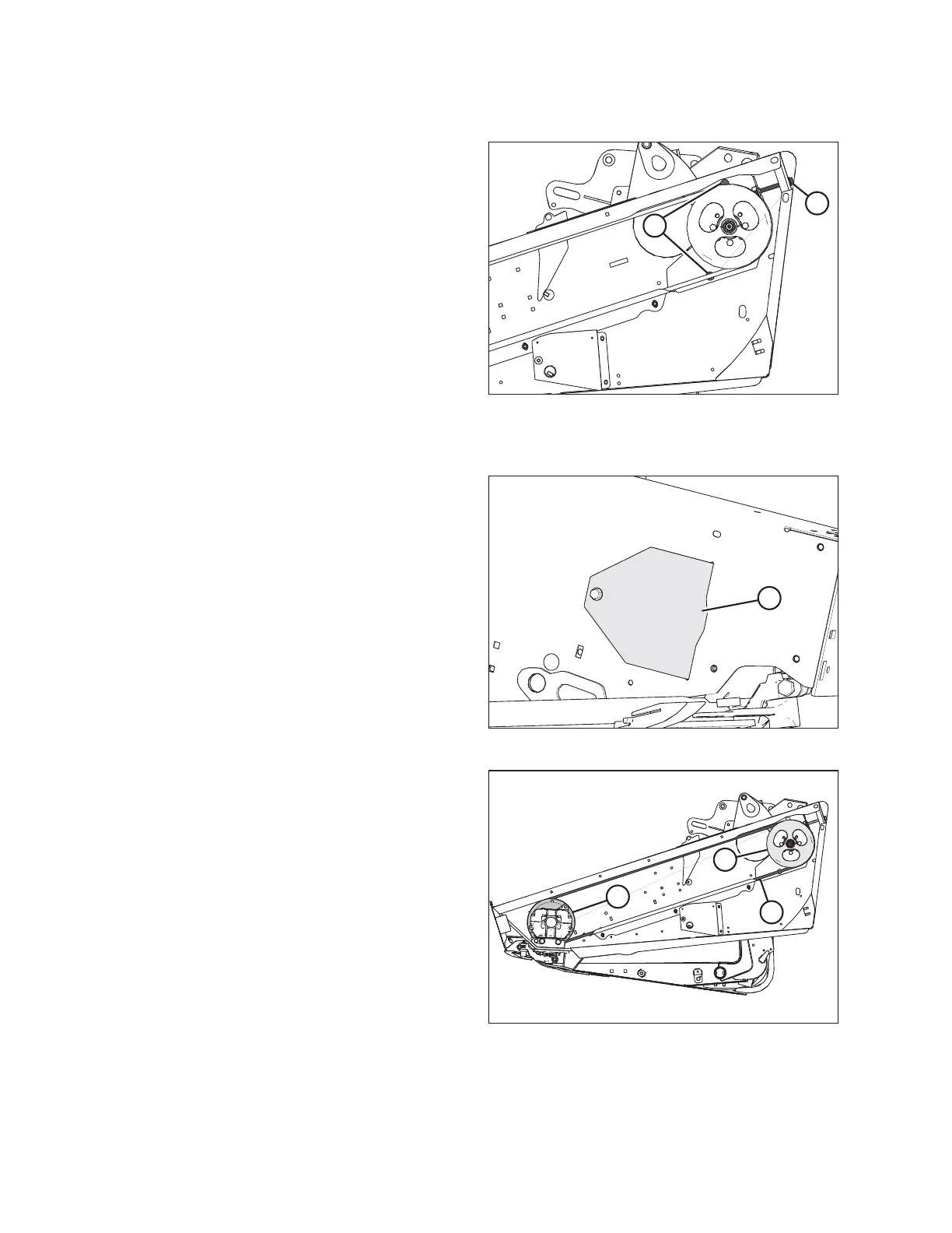 11. Slip belt (A) over and behind knife drive box pulley (C). Use