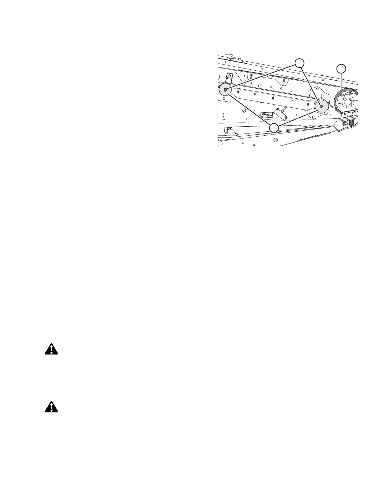 edge of the pulley when the header is running (a gap should be visible between the belt and the edge of the pulley).