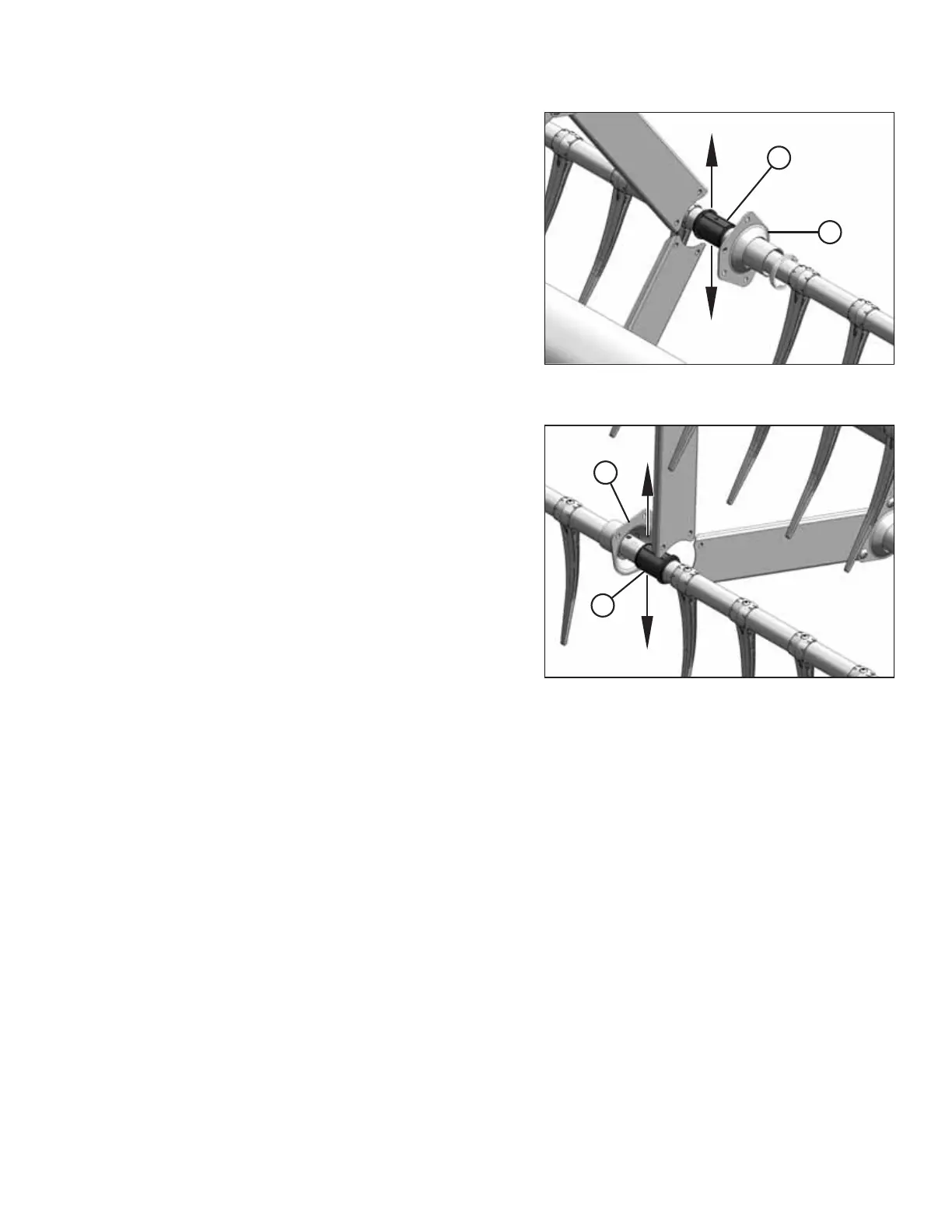 25. Remove bushing halves (B) from the tine tubes.