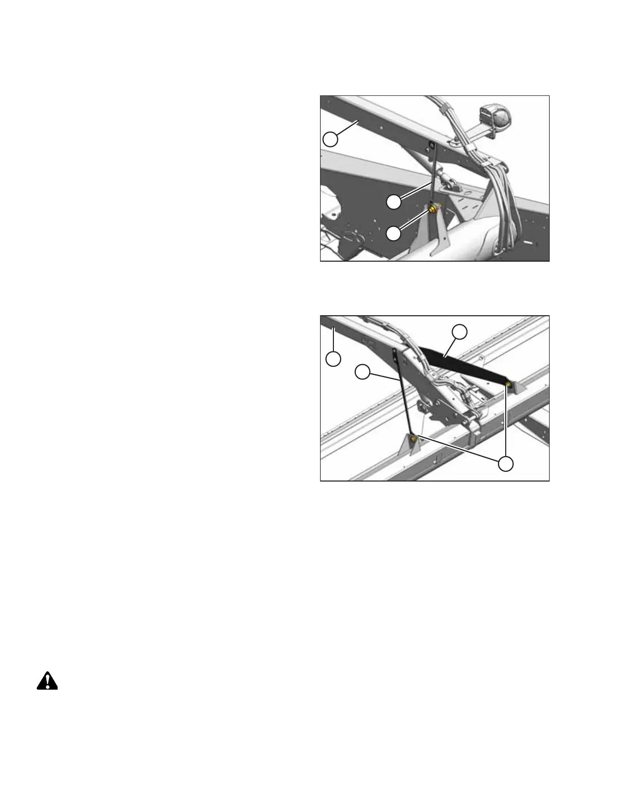 9. Loosen bolts (A) on braces (B) at the center support arm.
