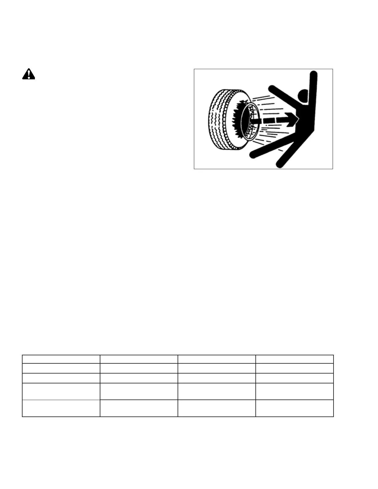 • Make sure the tire is correctly seated before inflating it to operating pressure.