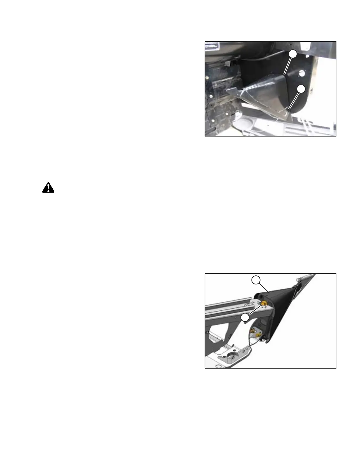b. Lift the crop divider and position lugs (B) on the crop