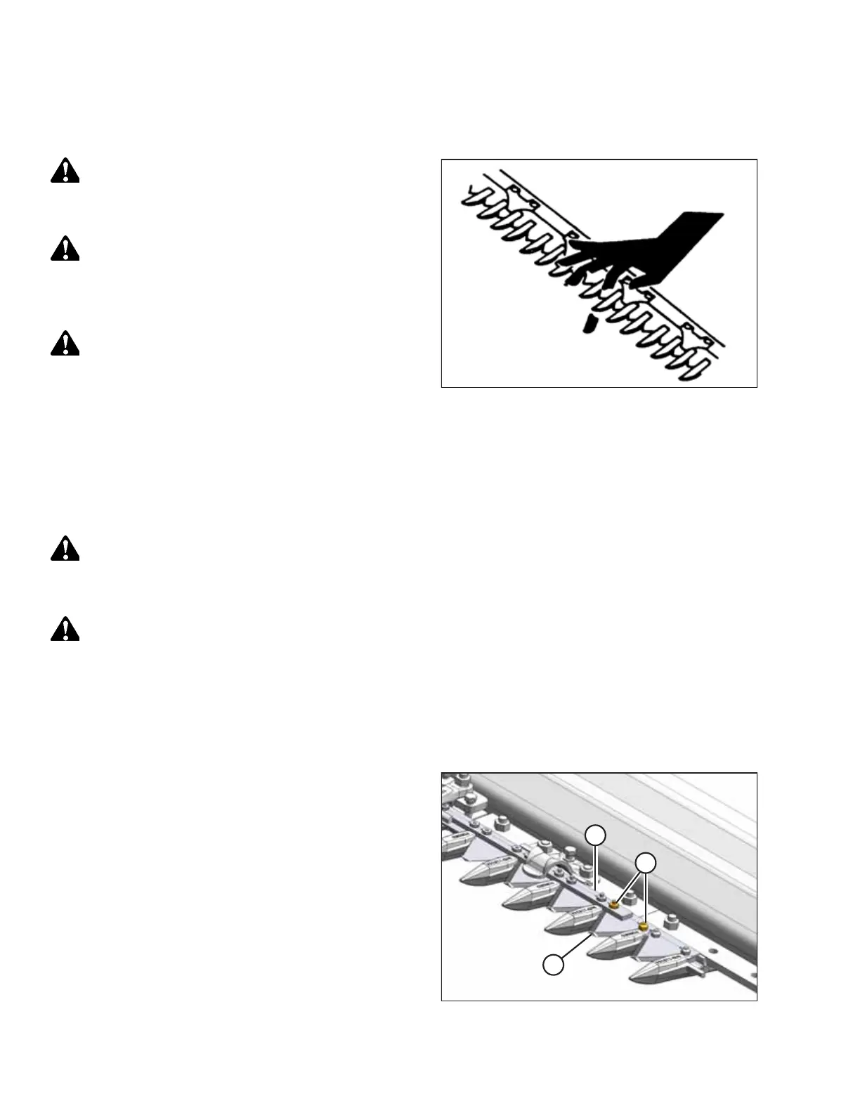 Inspect the knife sections daily and ensure they are firmly bolted to the knife back and are not worn or damaged (worn or