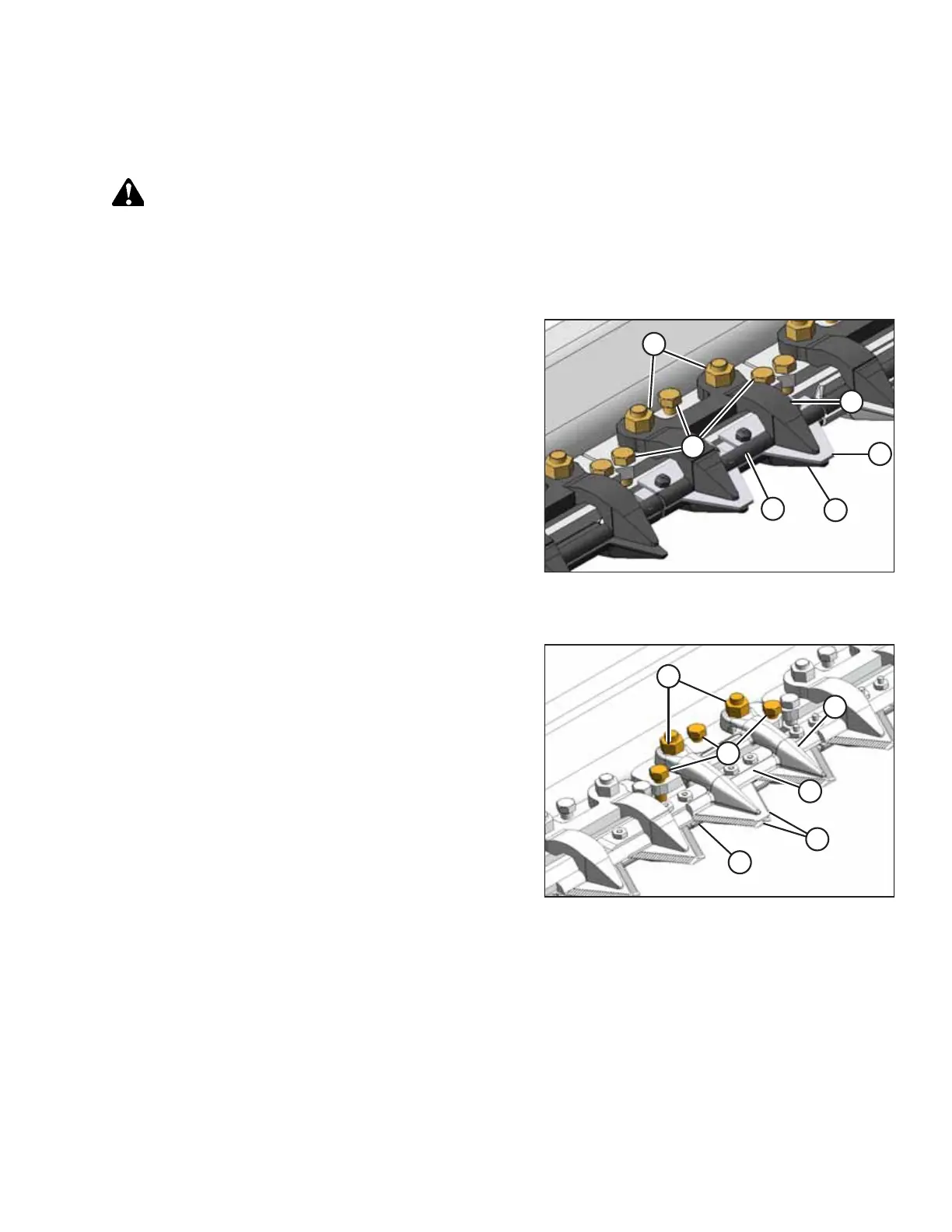 5. Turn bolts (D) until they contact cutterbar, then tighten