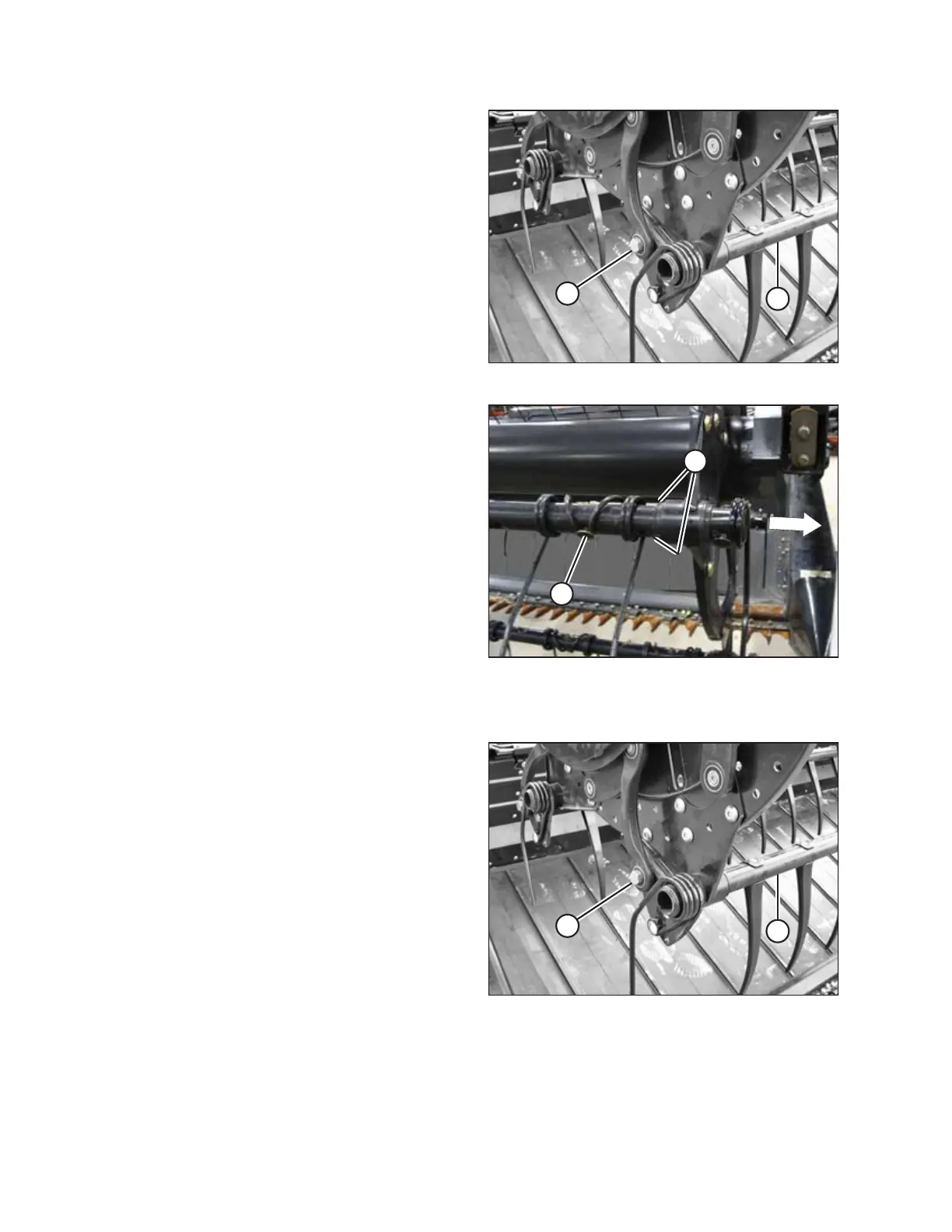 Remove bolt (A) from the tine next to the arm (or remove