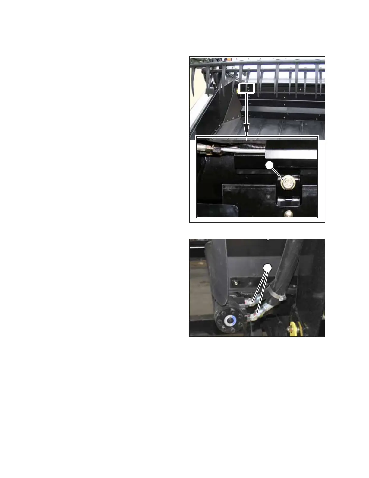 3. Reverse draper drive motor hoses (A) on the moved deck
