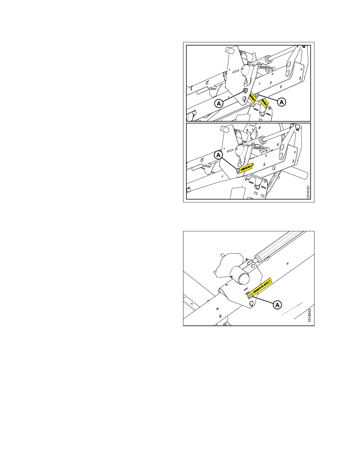23. Remove brace bolts (A) and tags locking reel fore-aft