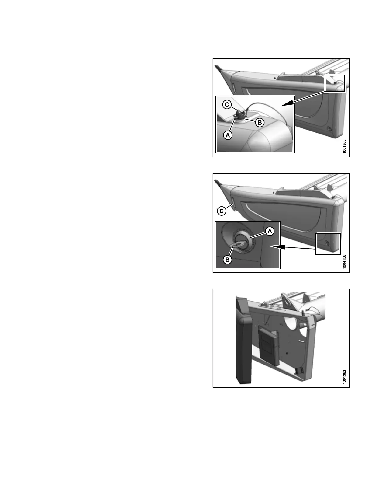 1. Remove lynch pin (A) and tool (B) from pin (C) at top