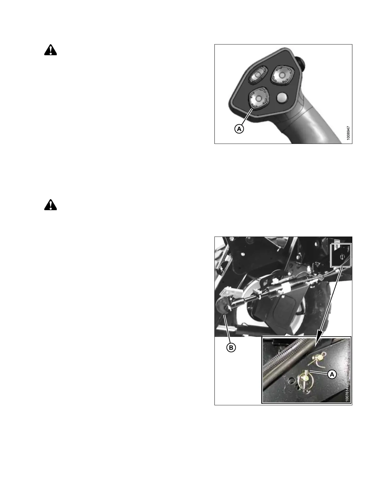 The following connection procedure applies to M155E4, M200, and M205 windrowers with non-self aligning