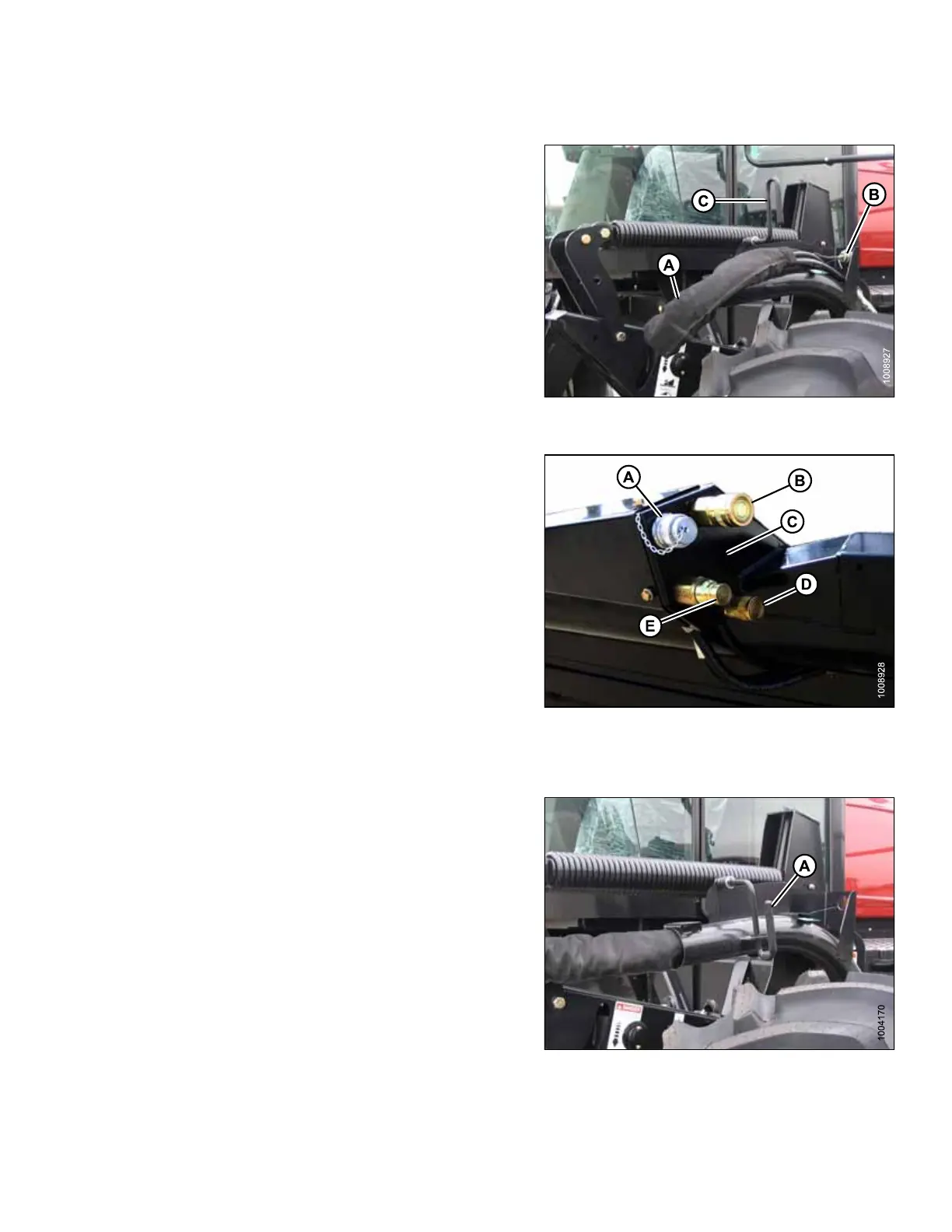 Connect header-drive hydraulics and electrical harness to header as follows: