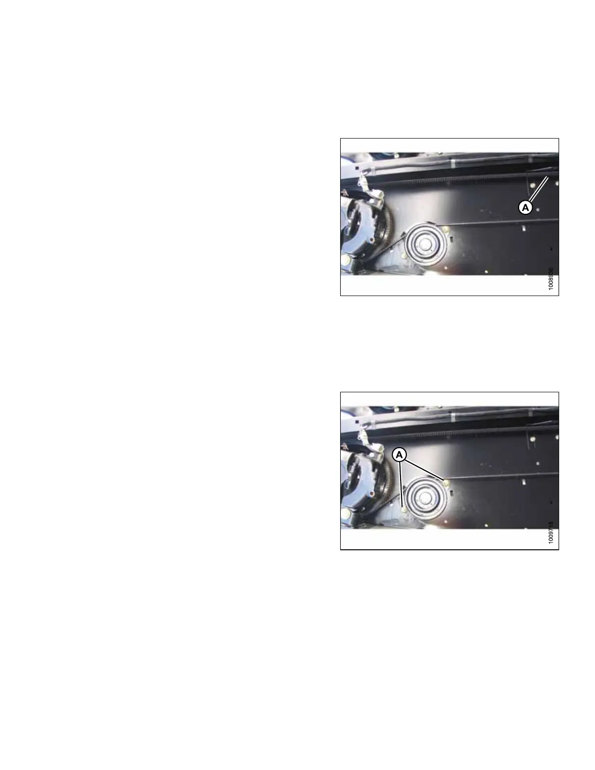 3. Loosen two nuts (A) on knife drive belt idler
