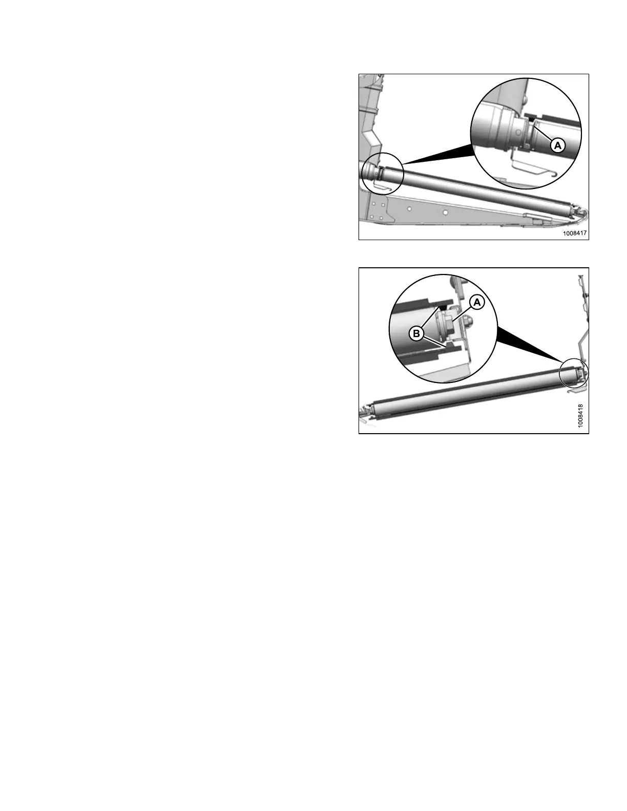 draper) is properly engaged in groove (A) of drive roller.