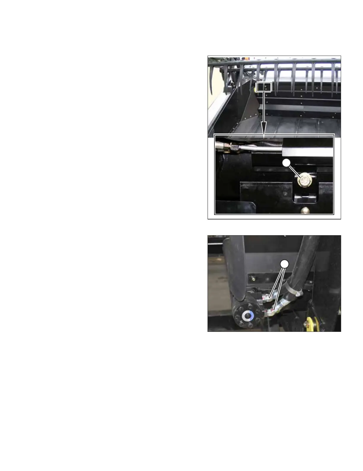 4. Reverse draper drive motor hoses (A) on the moved deck