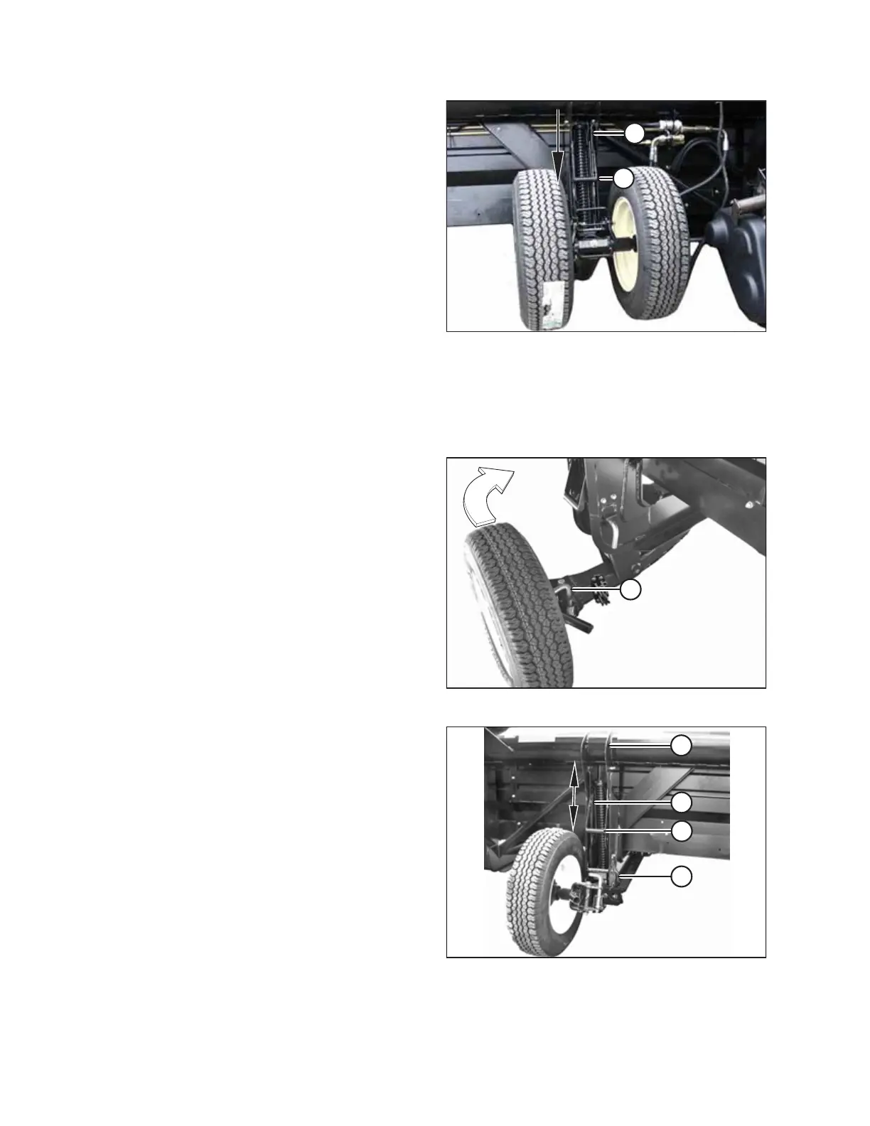 The rear wheels are located farthest from the towing vehicle. To prepare for operation in the field, the rear wheel