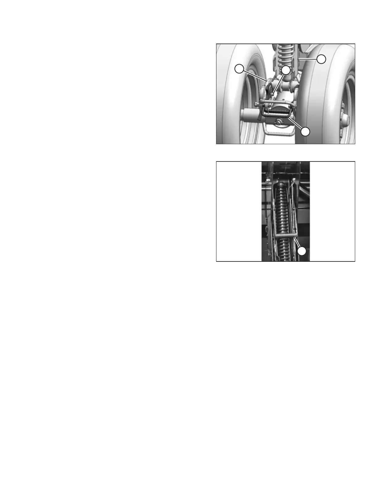 6. Pull latch handle (B) to release suspension linkage (C), and