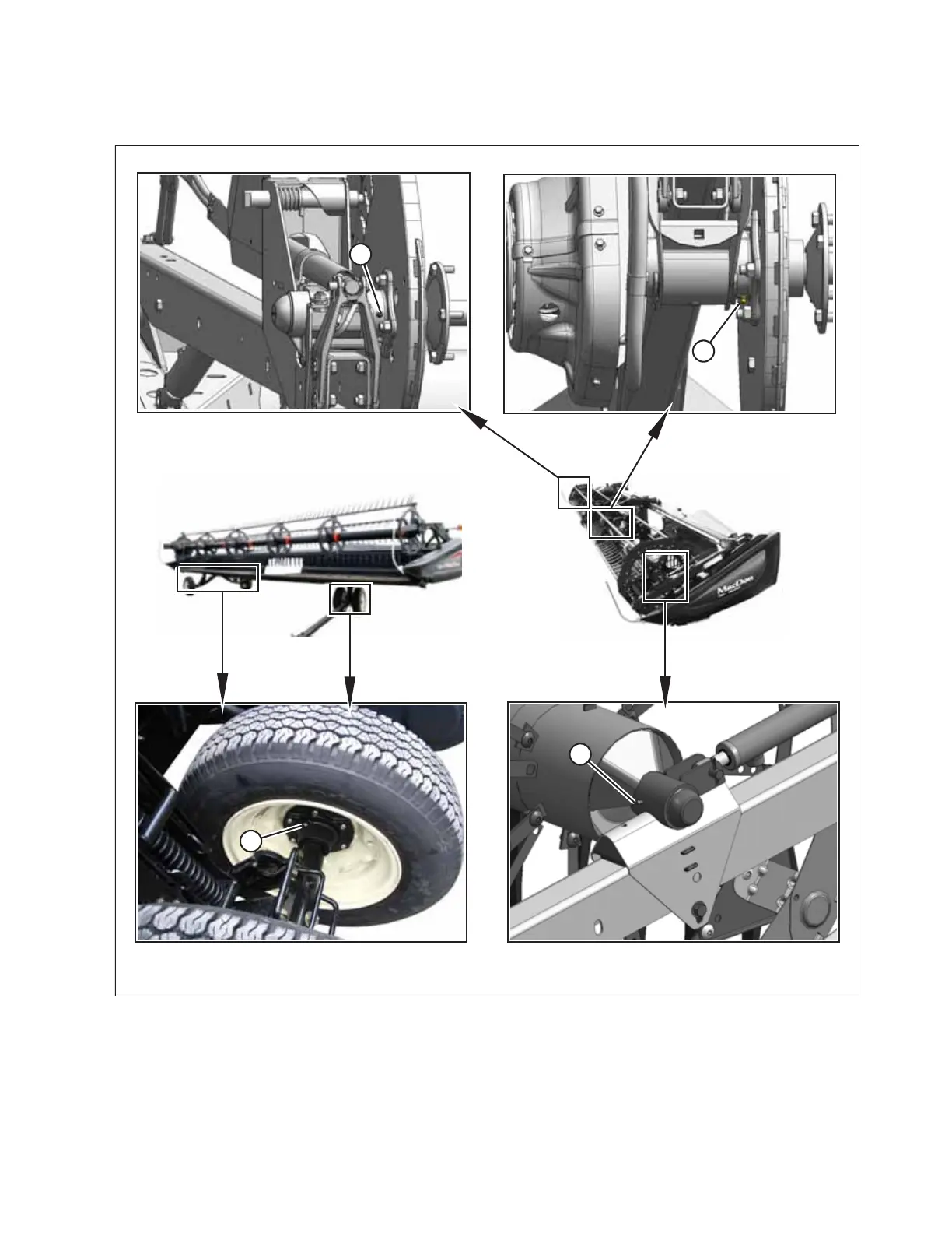 C - Wheel Bearings (4 Places) D - Reel Left Bearing (1 Place)