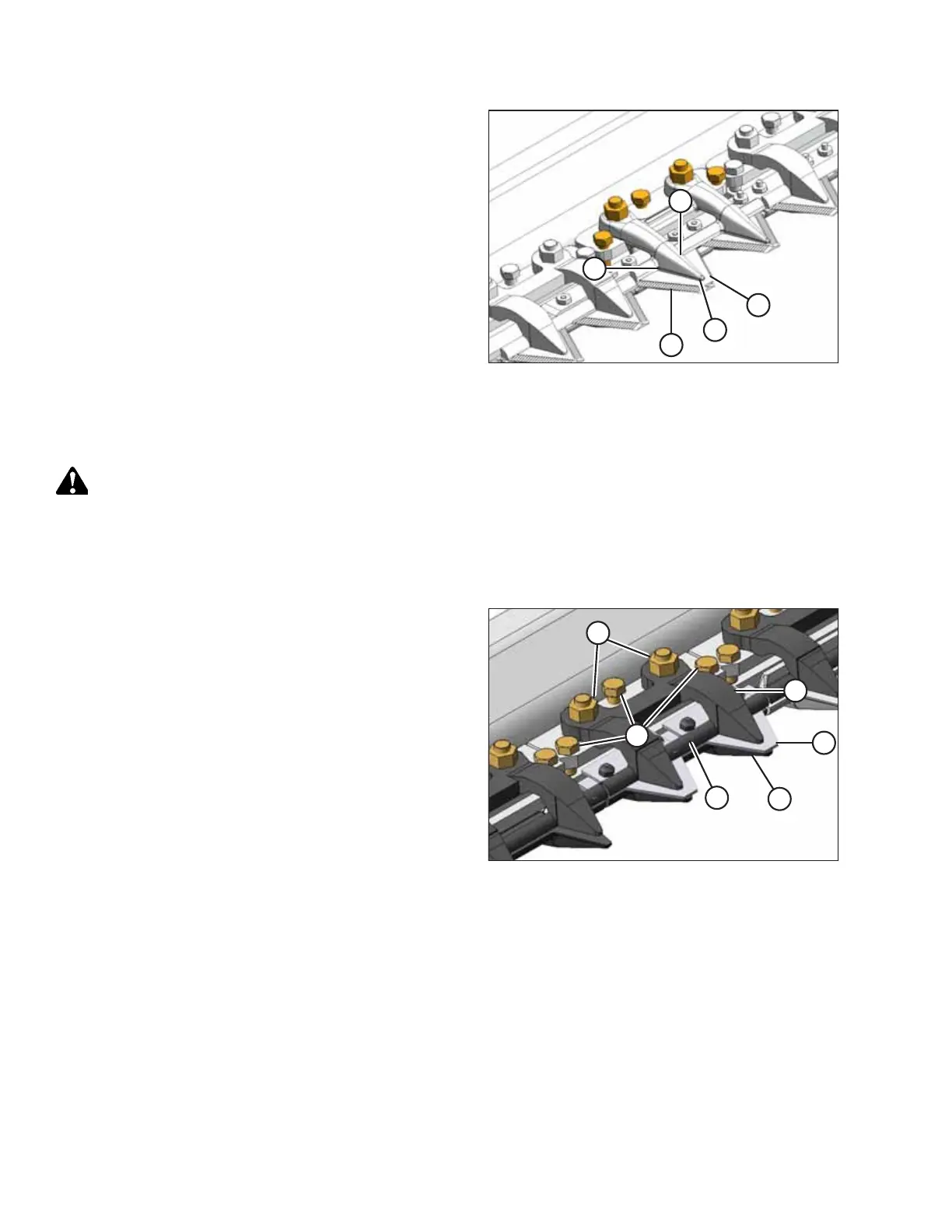 5. Turn bolts (D) until they contact cutterbar, then tighten