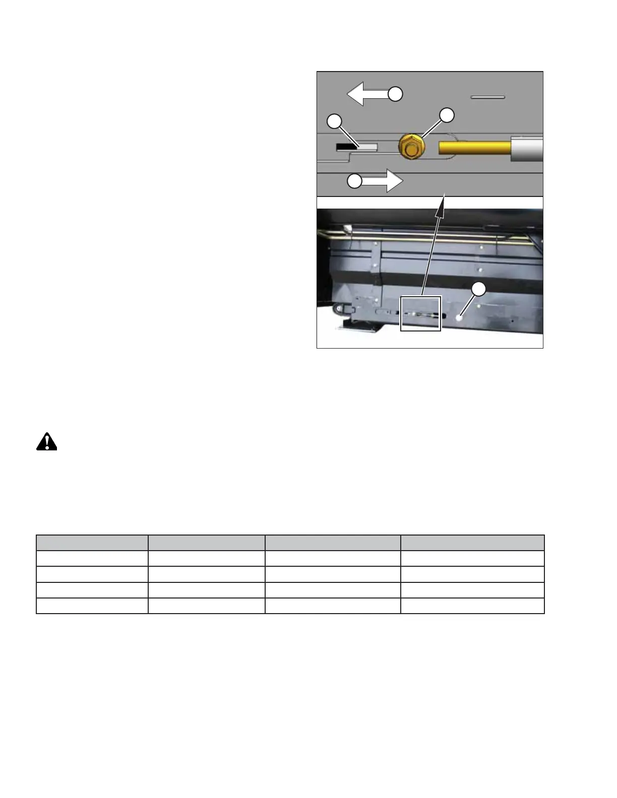 Each draper deck has a fixed drive roller (A) and a spring-loaded idler roller (B) that can be aligned using the adjuster rods