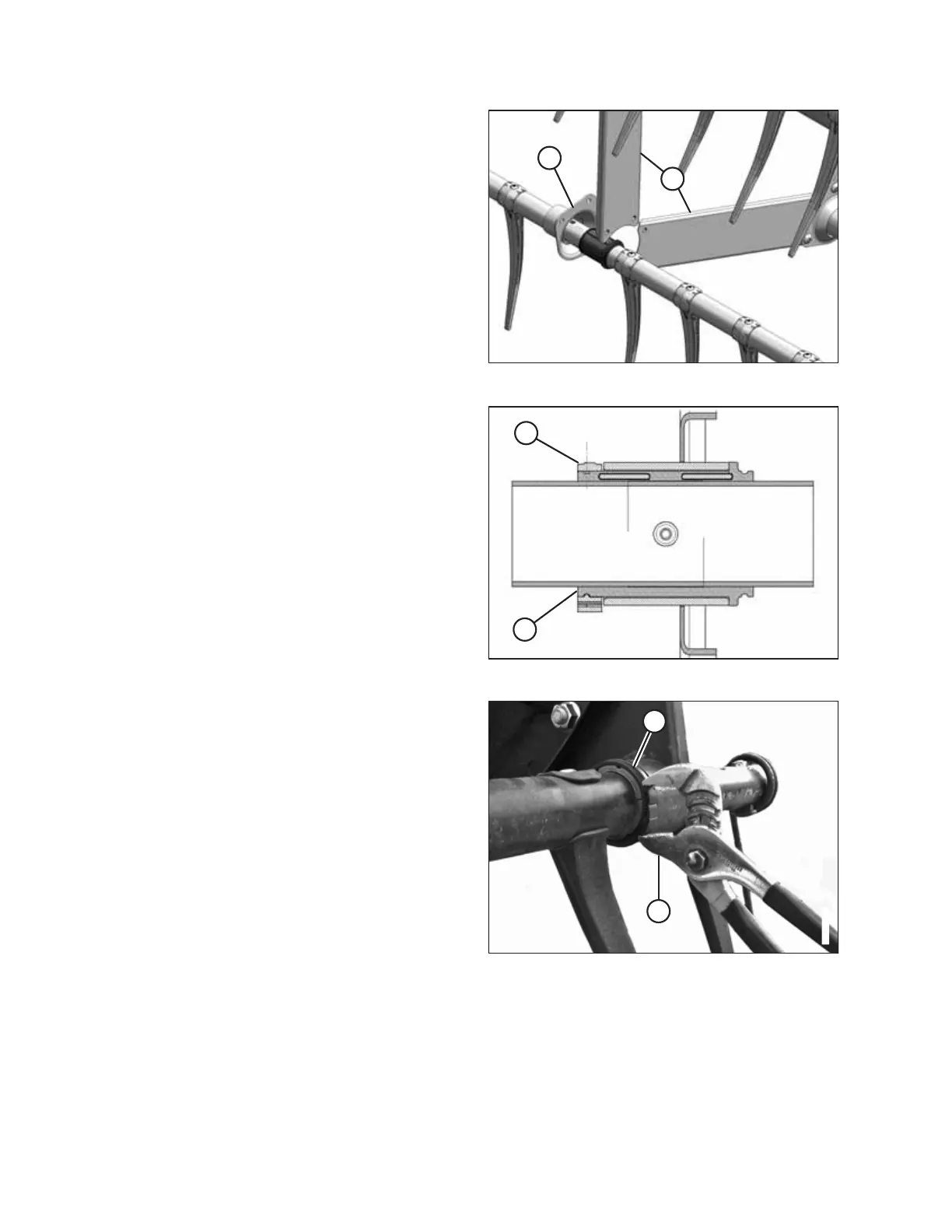 23. Install bushing clamp (A) onto the tine tube adjacent to the