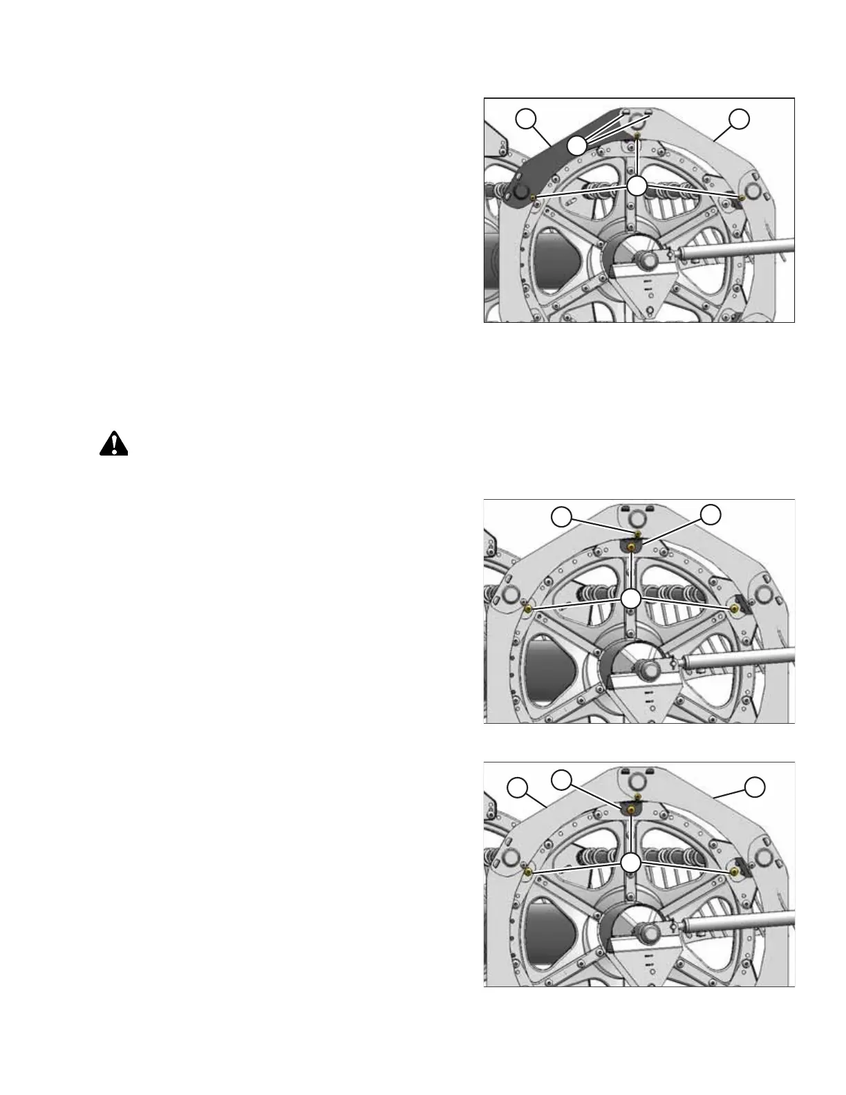 8. Secure reel endshields (A) to support (B) with bolts (C) and