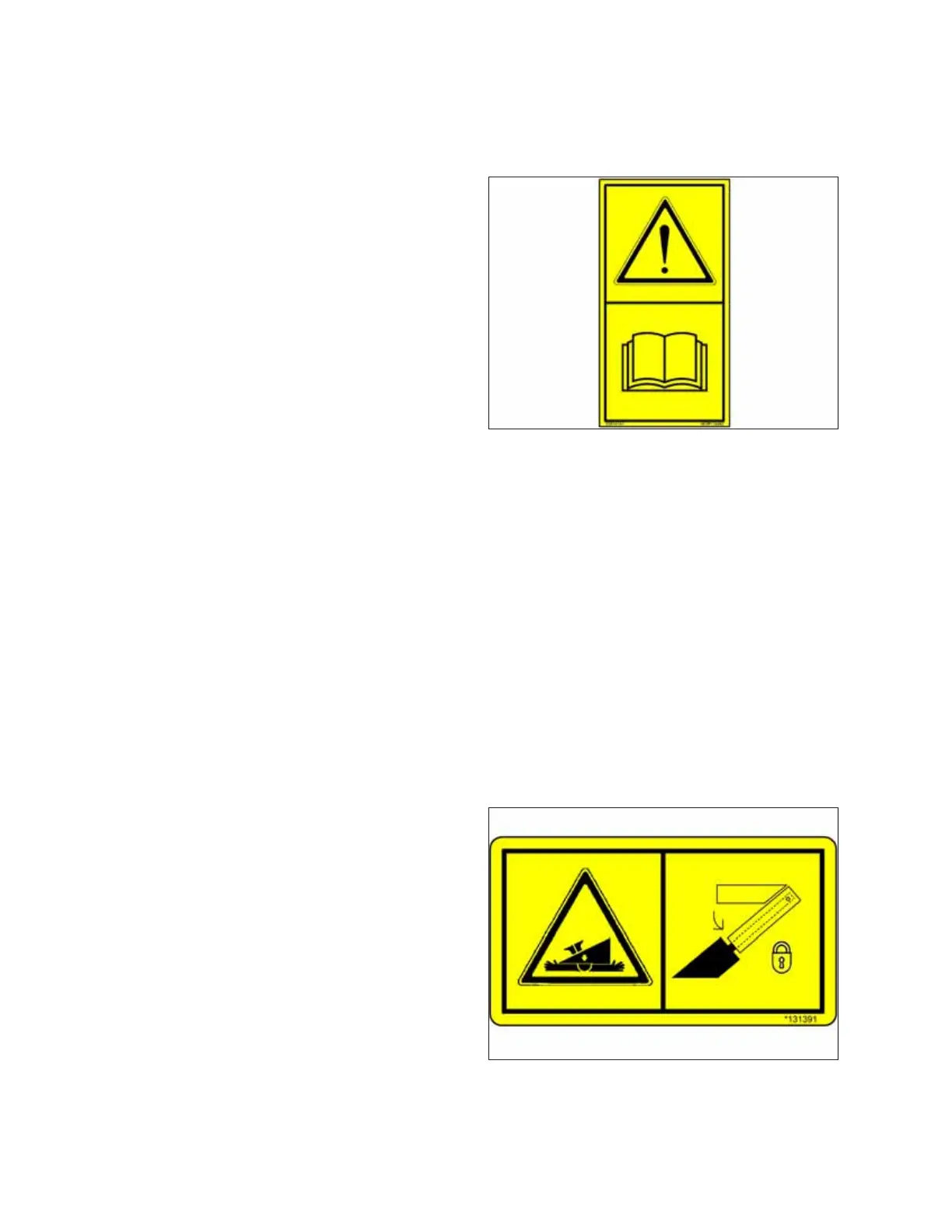 • Ensure that all the safety signs are installed and legible.