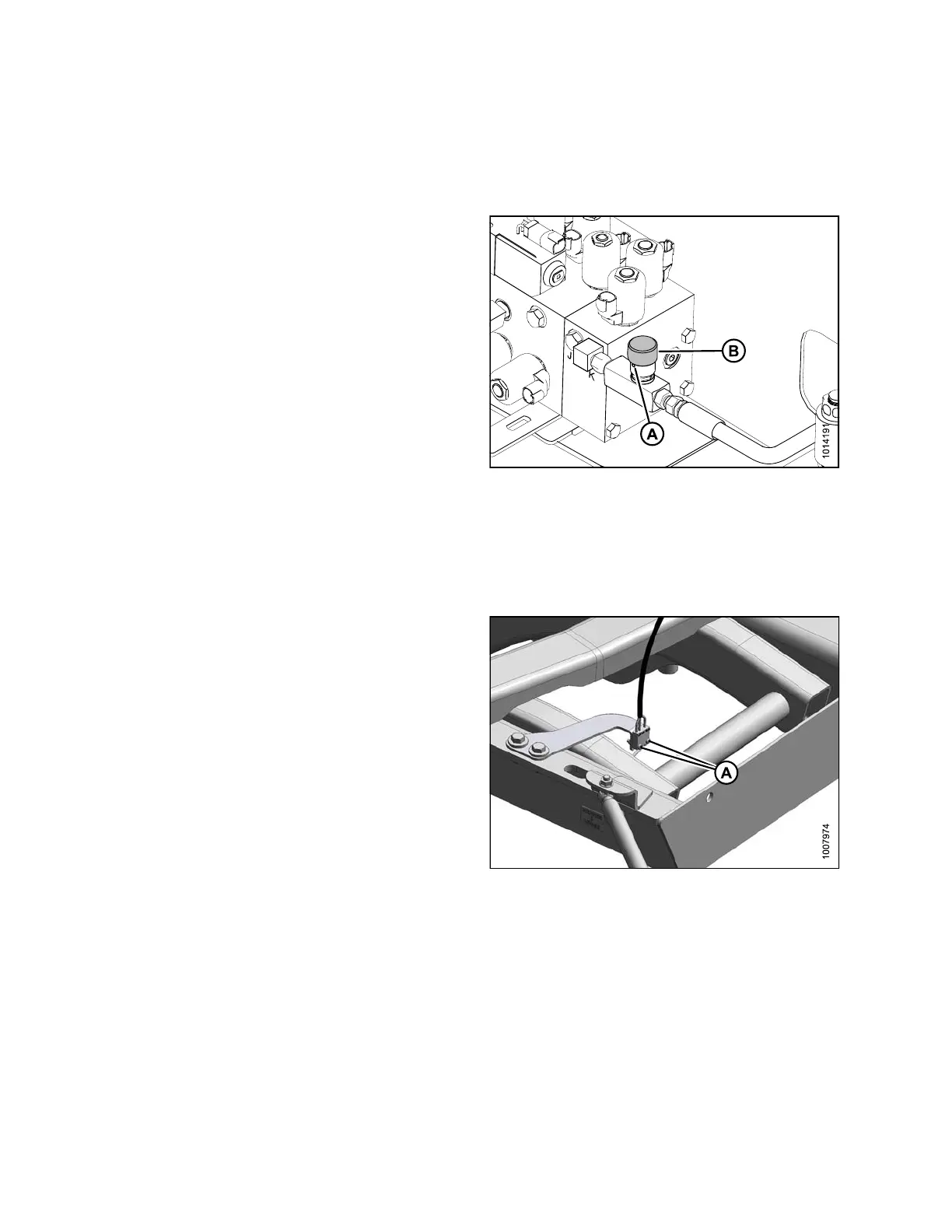 • If the deck lift speed is too fast, turn the adjuster knob (B)