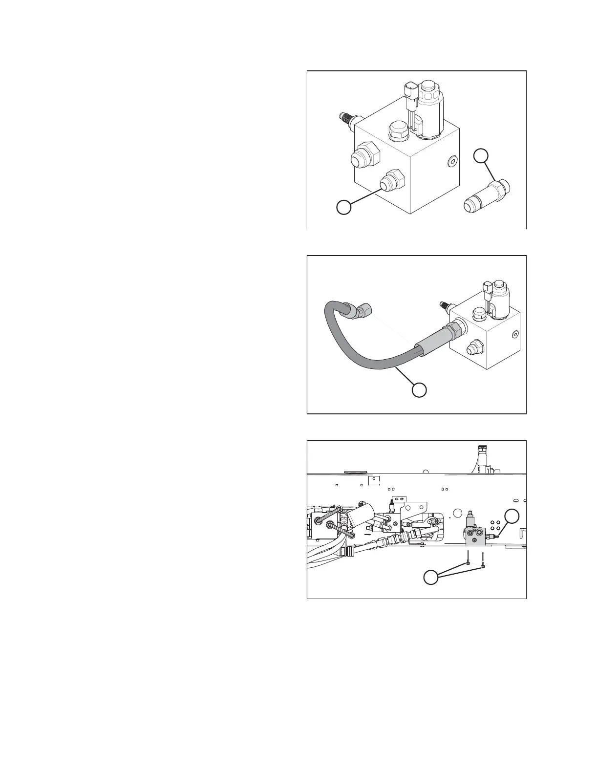 JIC fitting (B) in the P port on the DWA drive manifold.