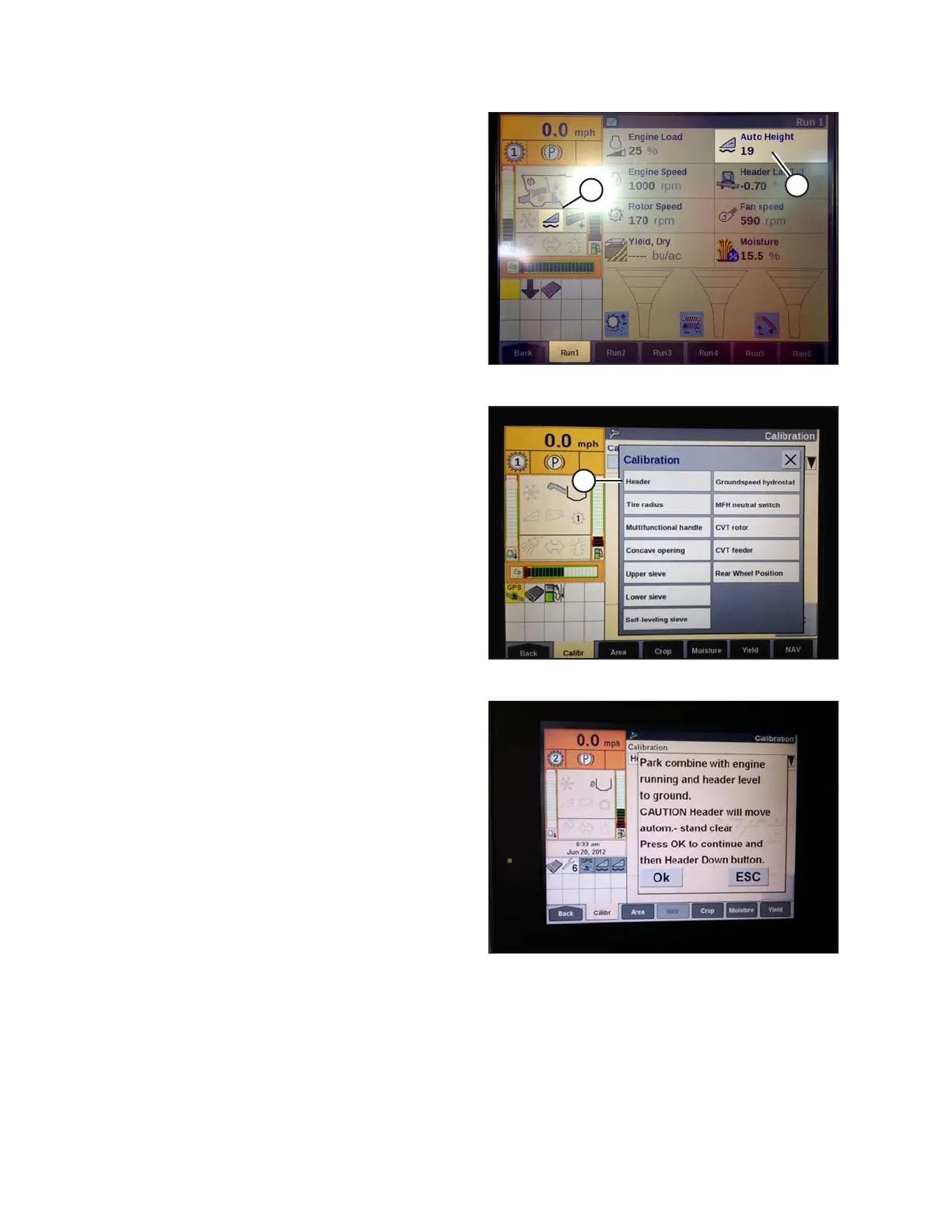 9. Select CALIBRATION on combine display, and press