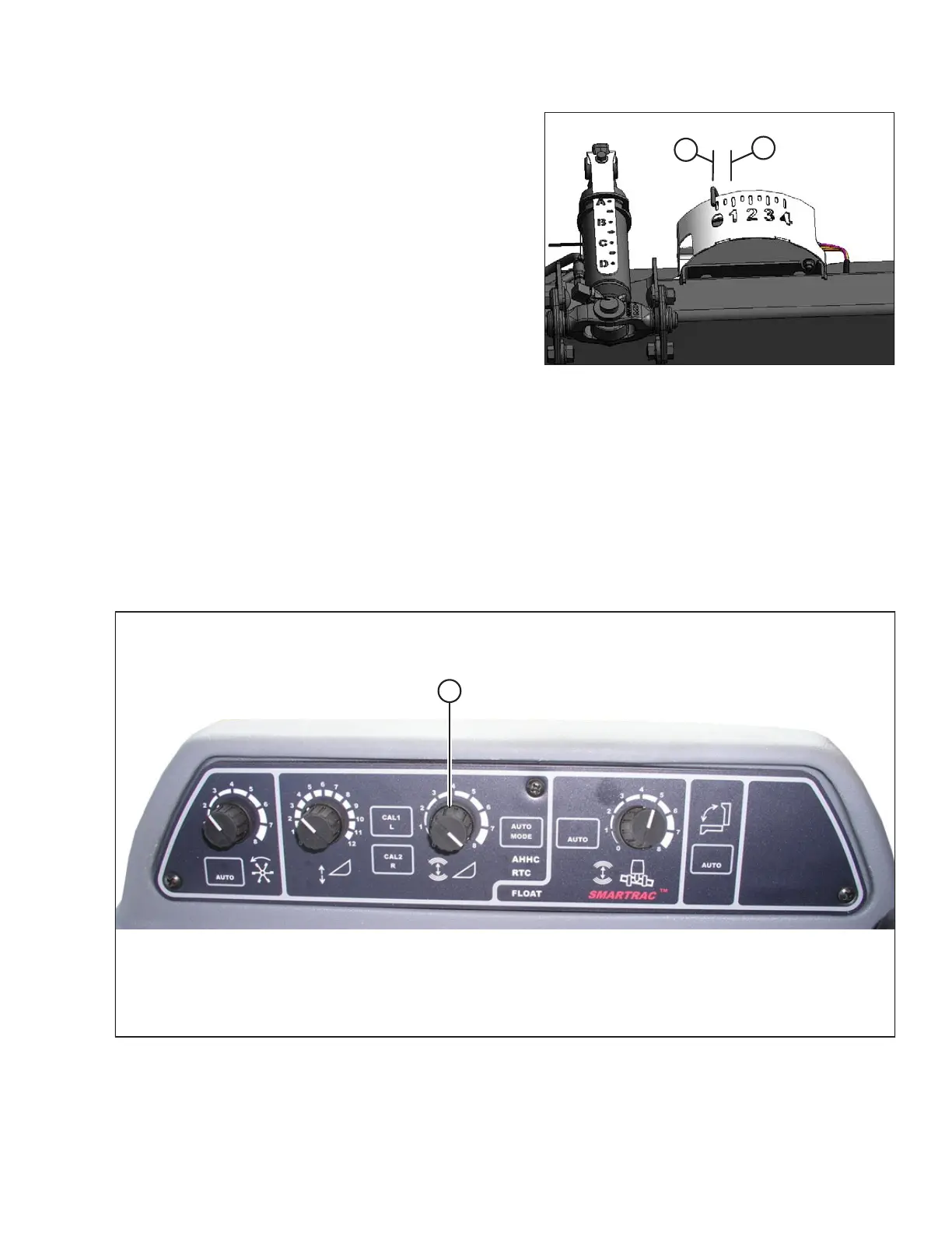 The SENSITIVITY ADJUSTMENT dial (A) controls the distance cutterbar must travel up or down before AHHC