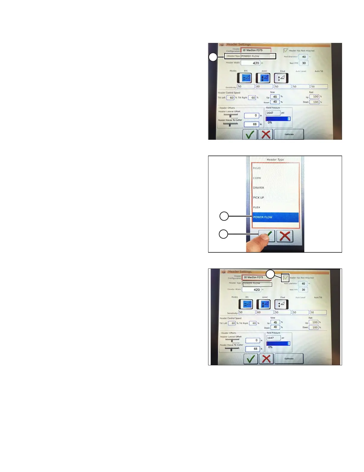 • For MacDon Draper and FlexDraper headers, touch