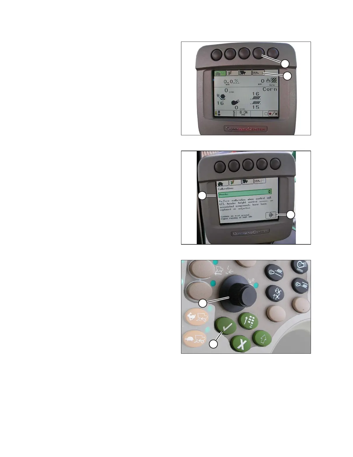 9. Follow steps listed on combine display to perform the calibration.