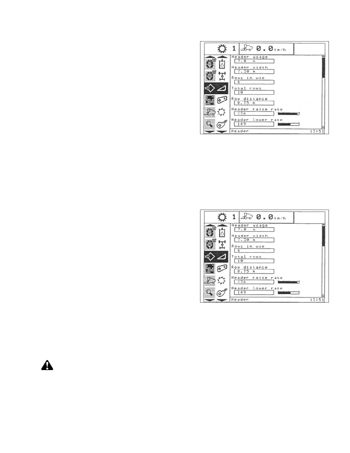 Setting Sensitivity of Auto Header Height Control to 200 (New Holland CR/CX Series)