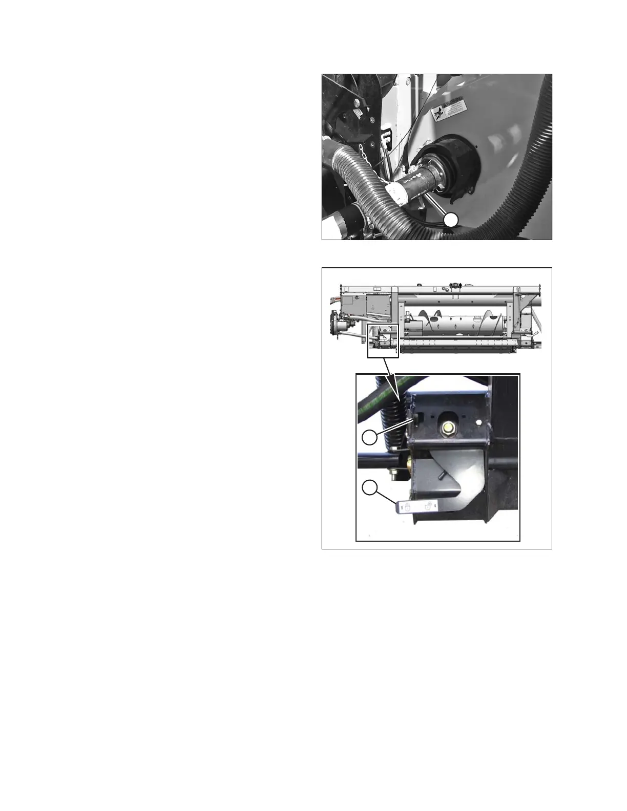 14. Attach driveline (A) to combine output shaft.