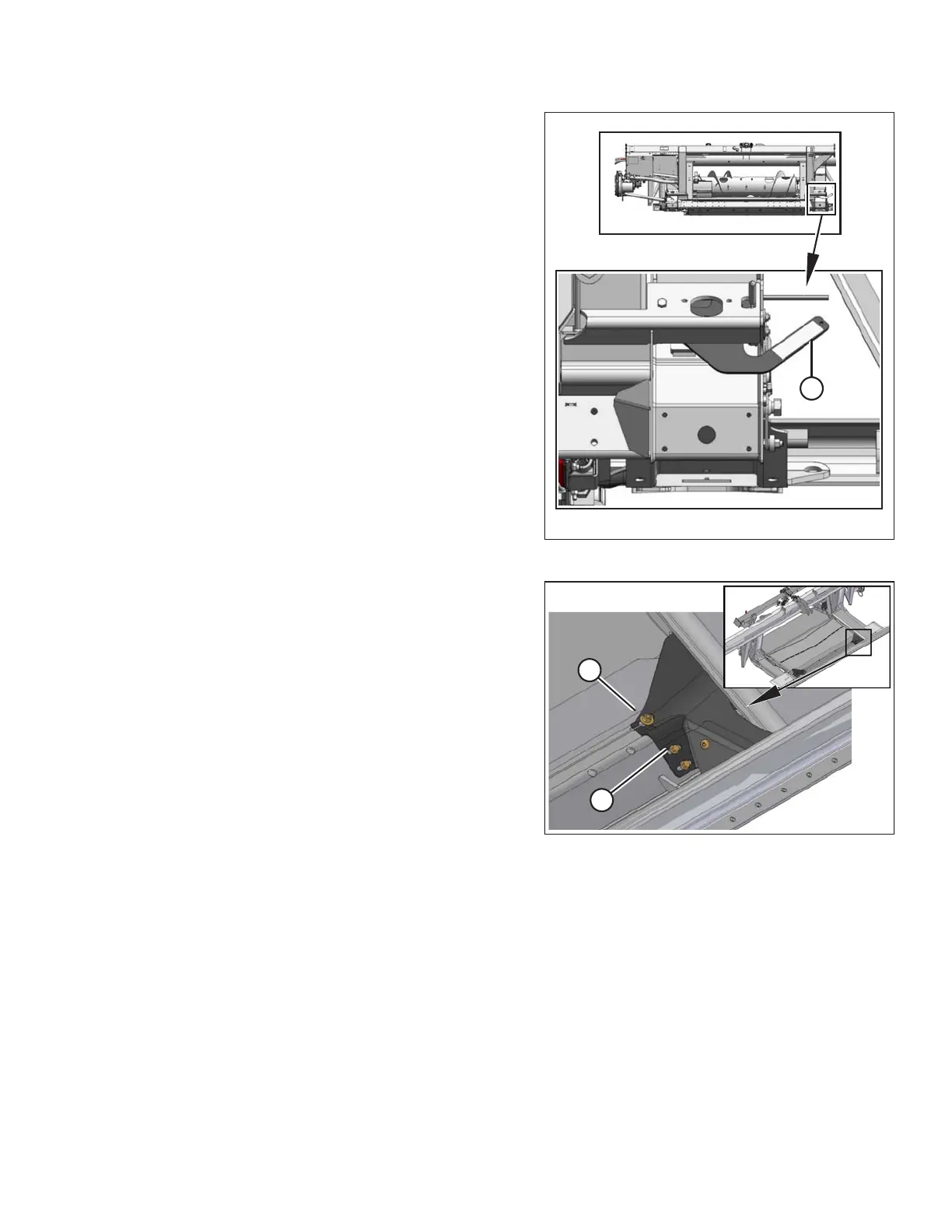 7. Remove the two hex head bolts (A) attaching filler (B) to