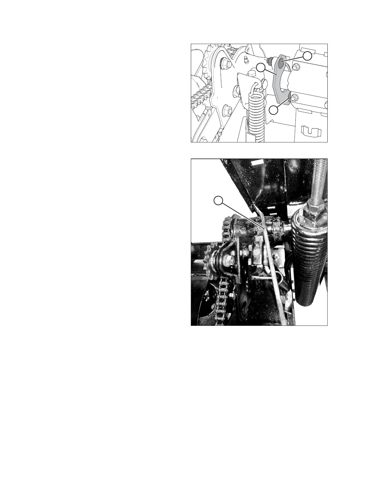 11. Remove lower bolt (A) and loosen top bolt (B). Swing